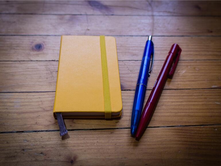 Nicht alles muss digital sein, gerade handschriftliche Notizen haben ihren Charme - und das erst Recht, wenn man diese in einem quietsch-gelben Moleskine festhält! Als Stift bevorzuge ich aufgrund des angenehmen Schreibgefühls einen Gelroller, aktuell einen griffigen Scribero von Faber-Castell. Die Begeisterung für den Scribero teilen auch viele Mitmenschen, denn der Stift verwindet mit schöner Regelmäßigkeit. Als Reserve immer mit dabei: Diverse Werbegeschenk-Kugelschreiber. Die werden auch nicht geklaut.