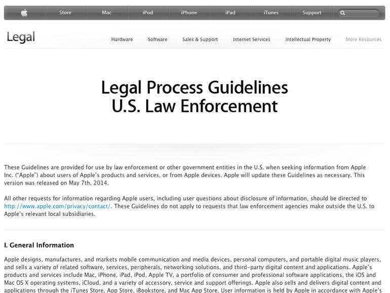 Die von Apple gestern eingerichtete Unterseite seines Web-Auftritts versteht sich als erste Anlaufstelle mit den wichtigsten Informationen für US-Behörden, die mit Anfragen zu Benutzerdaten an Apple herantreten wollen. Dazu relevante Fax- und Telefonnummern sowie der E-Mail-Kontakt subpoenas@apple.com werden aufgeführt und ihre Relevanz erklärt. In einer FAQ-Sektion geht Apple unter anderem darauf ein, dass seine Kunden über derart eingeleitete Ermittlungen aufgeklärt werden, wenn dies von offizieller Seite nicht explizit und rechtskräftig untersagt wird.