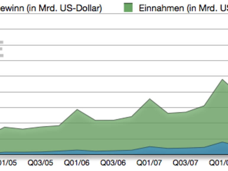 Die eigenen Ziele waren hoch: Rund 11 bis 11,4 Milliarden US-Dollar hatte Apple-Finanzchef Peter Oppenheimer für das von Januar bis März 2010 laufende zweite Geschäftsquartal 2010 vorausgesagt. Tatsächlich erwirtschaftete das Unternehmen in diesem Zeitraum 13,5 Milliarden US-Dollar – ein Zuwachs von rund 50 Prozent gegenüber dem zweiten Geschäftsquartal des Vorjahres (bereinigt um die neue Berechnungsgrundlage). Auch der Gewinn liegt mit 3,07 Milliarden US-Dollar oder 3,33 US-Dollar pro Aktie höher als im Vergleichszeitraum 2009.
