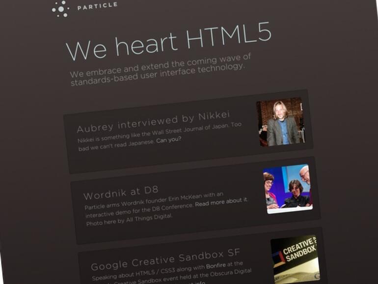 Wie Cnet berichtet, soll sich Apple weiteres Know-How eingekauft haben. Dieses Mal ging es um das Startup Particle, das sich als kleines HTML5-Studio bereits einen Namen gemacht hat. Particle war zuvor für große Kunden wie Google, Motorola, Amazon, Yahoo und Sony unter Vertrag und hat bei Apple unter anderen in den Projekten iAd und an der mit HTML5 umgesetzten Apple-Webseite gearbeitet.