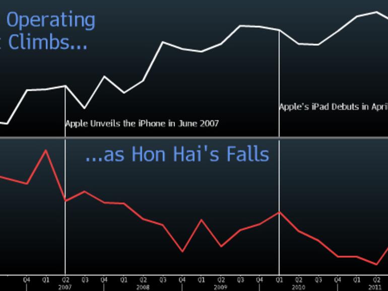 „Hon Hai ist bereit, Marge für Volumen und Größe zu opfern“, kommentiert Analyst Vincent Chen für Yuanta Financial Holding. Der Geschäftszweig Foxconn des Konzerns wachse mit Apple, um den ständig steigenden Bedarf zu decken. Doch besagtes Wachstum geht auf Kosten der Rentabilität.