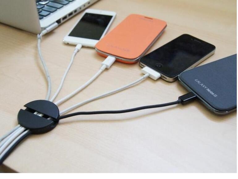 QooQi ist eine schlaue Lösung, die dem Kabelsalat auf dem Schreibtisch Einhalt gebietet. Kabel können durch das runde Kabelsystem einfach eingelegt und fixiert werden, der Halter an sich bleibt auf glatten Oberflächen sicher haften.