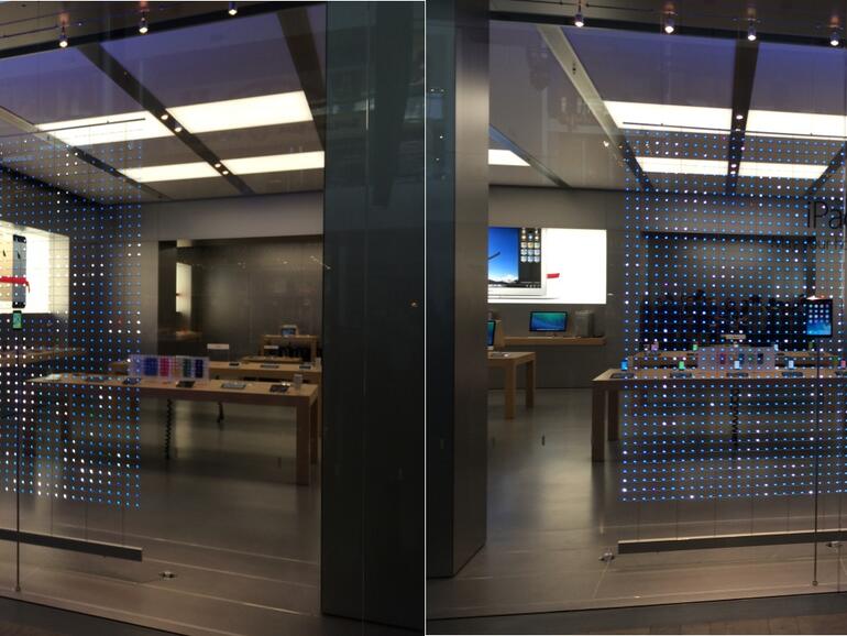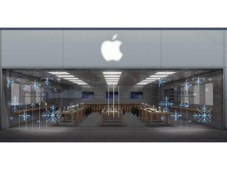 In den ersten Apple Retail Stores ist die magische Weihnachtsdeko schon angebracht worden. 9to5Mac hat einige Bilder der neuen Schaufenstergestaltung erhalten: Der Store in Las Vegas zeigt beispielsweise so schon die neuen LED-Vorhänge für die "Holiday Season 2013", die mit wechselnden Bildern zwei große Schaufenster ausfüllen.