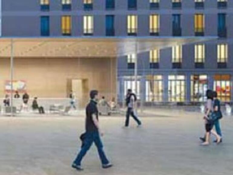Auf einer zweiten Illustration ist zu erkennen, dass sich das Gebäude grob an dem Design des Apple Stores an der Upper West Side in New York orientiert. Und wie immer bei Apple, ist auf den Abbildungen kein Apple Logo zu erkennen.