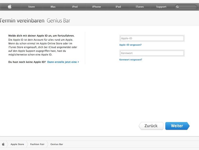 Die Terminbuchung kann unter http://concierge.apple.com/reservation/de/de/techsupport/ erfolgen, ab sofort aber nur noch mit einer Apple ID. Hat man noch keine, kann man sich direkt eine anlegen, erste dann geht es weiter im Buchungsprozess.