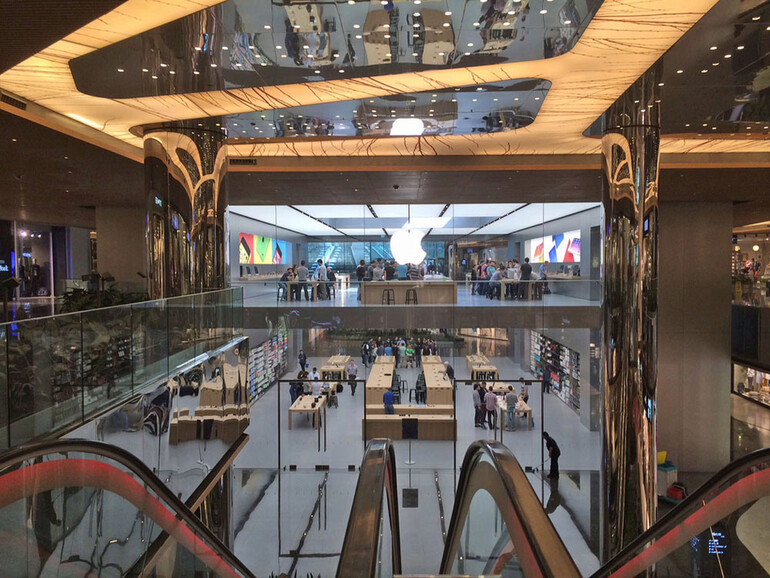 Die ersten Bilder vom Apple Store in Istanbul zeigen einen sensationell schönen Store. Er ist zweistöckig angelegt, natürlich wieder mit der typischen Apple-Glas-Treppe, und liegt unterirdisch in dem großen Shoppingcenter eingebunden. Der Store im Zorlu Center hat über eine rechteckige Glaskuppel eine Anbindung an das Tageslicht, aber keinen Eingang über die Oberseite.