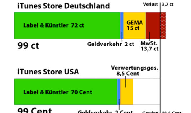 Widersprüchliche ZahlenVergütung der Künstler im iTunes Store Wer seine Musik über Apples iTunes Store verkaufen will, muss dies entweder über ein großes Label machen oder er nutzt Dienstleister, die Musik kleiner Künstler...