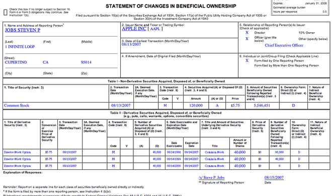 120.000 Aktien mehrSteve Jobs wandelt Optionen in Aktien um Diese Woche wandelte Steve Jobs, CEO von Apple, nach Berichten von Utility Belt Optionen in 120.000 Aktien zum Wert von 5,75 US-Dollar um (Original-Dokument hier...