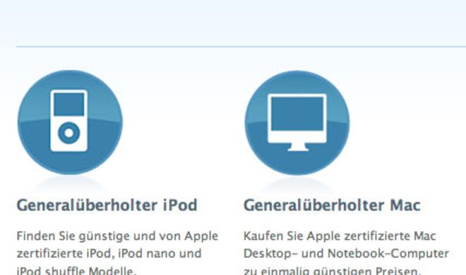 Generalüberholte AngeboteSonderangebote bei Apple: Überholte iPods und Macs Wer auf Schnäppchenjagd ist, braucht derzeit nicht nur den "Sale"-Angeboten in den Schaufenstern zu folgen. Auch Apple bietet in seinem Online-Shop derzeit gute...