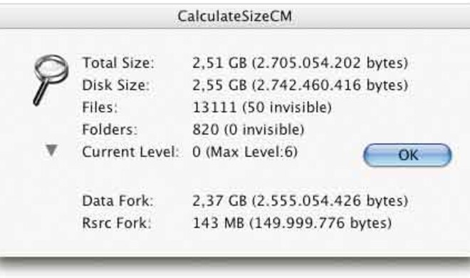 CalculateSizeCM Manchmal hat es der Finder mit dem Rechnen nicht so: Da wird im Information-Dialog die Dateigröße nicht aktualisiert, erst beim Kopieren auf CD kommt heraus,...
