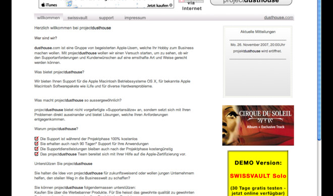 Projekt DusthouseKostenloses Support-Angebot für Mac-Anwender Alle Mac-Anwender mit Hard- oder Software-Problemen bekommen jetzt neue Unterstützung: Das Projekt "dusthouse". Dahinter verbirgt sich eine Gruppe von Mac...