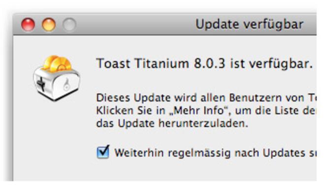 Version 8.0.3 erschienenToast-Update verbessert Leo-Unterstützung Roxio haben Version 8.0.3 der Brennsoftware Toast veröffentlicht. Es wurden unter anderem einige Probleme behoben, die mit der Verwendung unter Mac OS X 10.5...