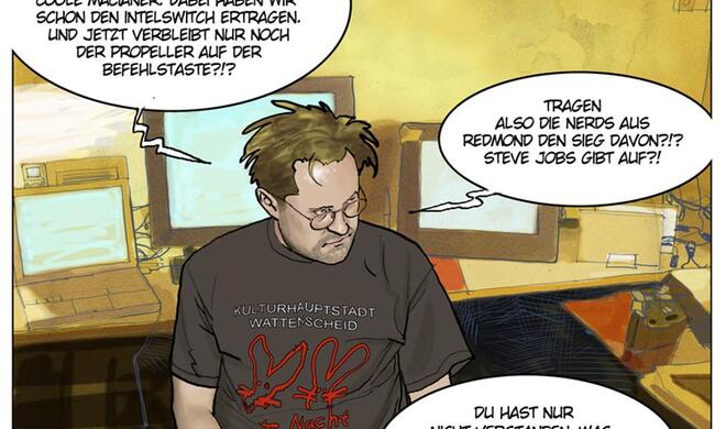 Späte VerarbeitungDie Apfeltaste im Spiegel-Comic Zeichner Jamiri, bekennender Apple-Jünger, hat sich im aktuellen Spiegel-Comic dem