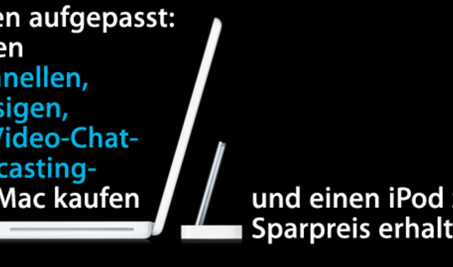 Apple BildungMac&iPod-Bundle für Schüler und Studenten Apple schnürt für Schüler und Studenten derzeit ein spezielles Angebot: Beim Erwerb eines Mac, sei es MacBook, MacBook Pro, iMac oder PowerMac G5 und eines iPod,...