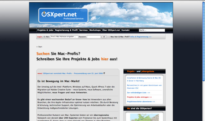 Job-Plattform für die Mac-BrancheOSXpert.net vermittelt Mac-Profis Mit OSXpert.net startet nach einer einjährigen Testphase die Plattform zur Ausschreibung von Projekten und Jobs speziell für die Mac-Branche im...