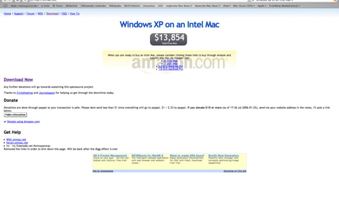 Es ist vollbrachtWindows XP bootet auf Intel-Mac Der auf der Seite www.winxponmac.com ausgeschriebene Contest, Windows XP neben Mac OS X als funktionsfähiges Betriebssystem auf einem Intel-Mac zu installieren,...