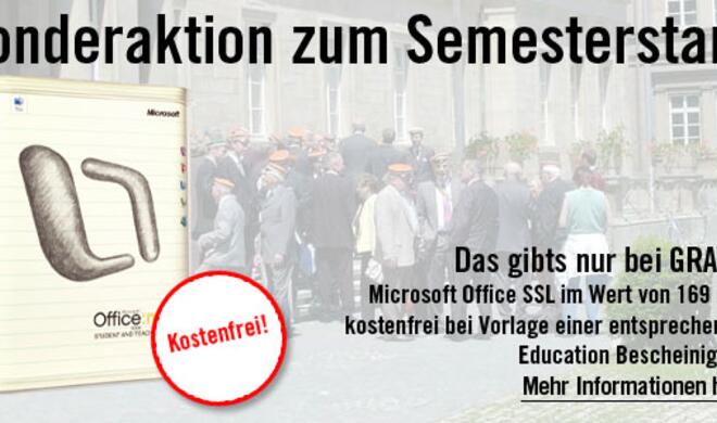 Rabatt-AktionGravis: Microsoft Office SSL kostenfrei zum Semesterstart Schüler, Studenten oder Lehrkräfte, die jetzt bei Gravis einen beliebigen Macintosh Computer kaufen, erhalten das Microsoft Office 2004 SSL Paket im Wert von 169...