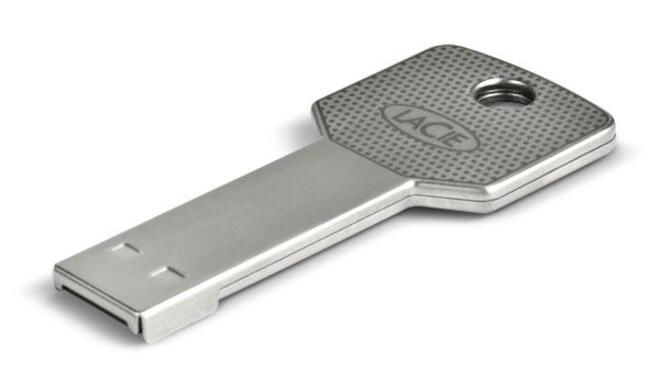 Schicker USB-SpeicherLaCie iamaKey 4 GB Zwar lassen sich die meisten USB-Speicher auch am Schlüsselbund befestigen, doch leidet darunter häufig die in der Regel aus Kunststoff ausgeführte USB-Stick...