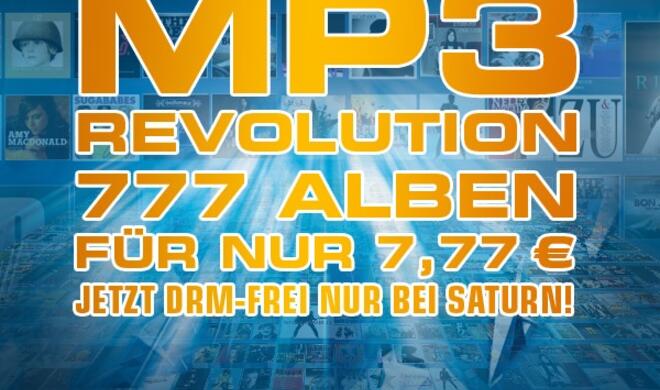 SchnäppchenalarmSaturn-Aktion: 777 Alben für je 7,77 Euro downloaden Ob es sich tatsächlich um eine "MP3-Revolution" handelt, wie Saturn reißerisch ankündigt, soll einmal dahin gestellt bleiben - ein Schnäppchen ist es dennoch: Ab...