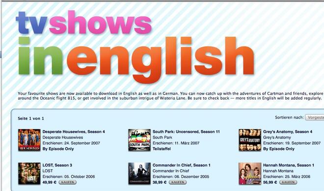 iTunes Angebot wird erweitertTV-Serien jetzt auch in Originalsprache bei iTunes Die Freude war groß, als Anfang April endlich auch im deutschen iTunes-Store bekannte TV-Serien zum Katalog hinzugefügt wurden. Die Euphorie währte jedoch nicht...