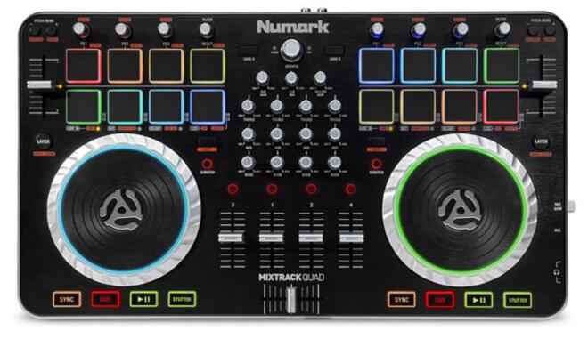4-Kanäle, 16 Pads und WheelsNumark Mixtrack Quad - DJ Controller Numarks neuer DJ Controller verfügt über ein integriertes Audio Interface und 16 hintergrundbeleuchtete Pads. Neben einem 4-Kanal Mixer mit dedizierten Reglern...