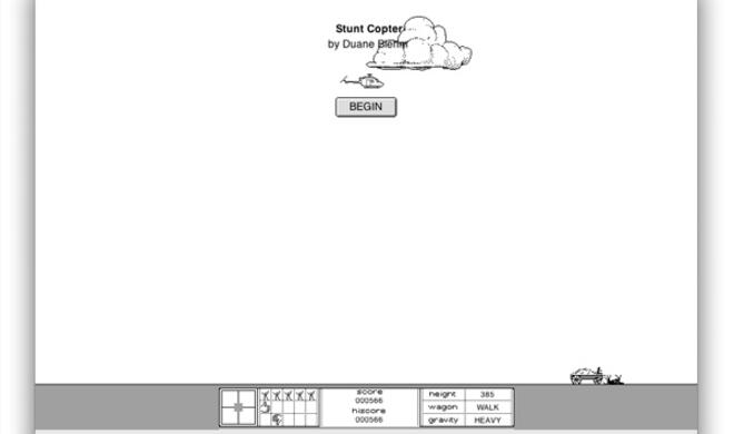 Rettungseinsatz in S/WRetro-Spiel Stunt Copter Spielen wie anno 1987 auf dem Mac: Stunt Copter 1.1.0 ist eine originalgetreue Umsetzung des alten Mac-Spiels.