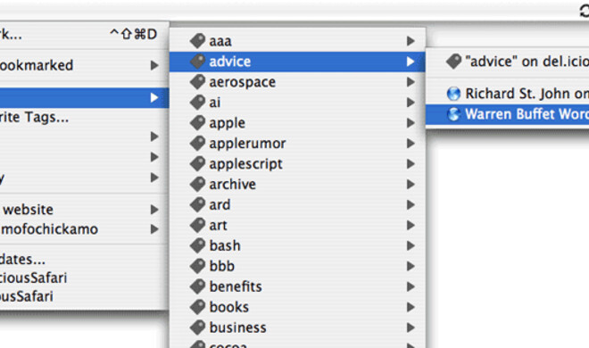 LeckerEchte del.icio.us-Integration für Safari del.icio.us ist eine Website zum Ablegen von Lesezeichen und von den Web-2.0-Firmen wohl derzeit der Albtraum für die schreibende Zunft. Wer einmal einen Link...