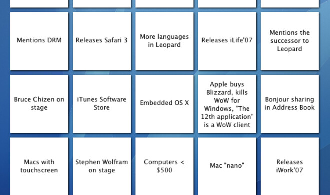 Spiel mit den GerüchtenWWDC Bingo 2007 Ein schräges Spiel, welches man vielleicht auch als ironischen Kommentar zu all den Gerüchten rund um die nächste Keynote von Steve Jobs verstehen kann: Keynote...