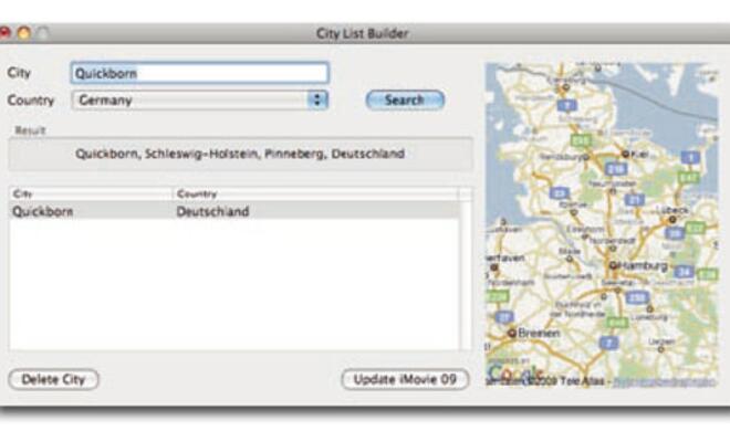 iMovie-Städteliste erweiternCity List Builder Wenn die mitgelieferte Datenbank nicht reicht: City List Builder erweitert die Ortsliste von iMovie 09. Wie viele Anwender vor iMovie ’09 sitzen und dabei das...