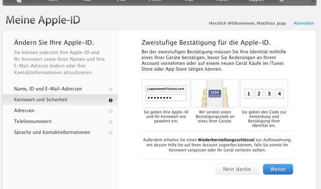 Zwei Stufen für mehr SicherheitApple startet zweistufige Apple-ID-Bestätigung auch in Deutschland Die zweistufige Apple-ID-Authentifizierung ist nun auch in Deutschland, Japan, Italien und Spanien aktiviert. Mit dieser optionalen Funktion lässt sich das Apple...