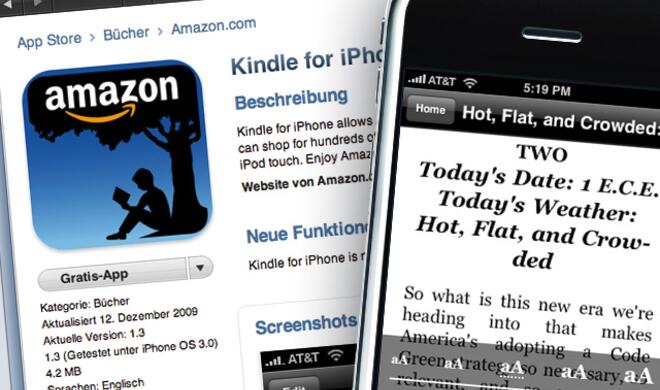 Gratis Amazon-App im App StoreKindle-E-Bücher auf dem iPhone lesen Bücher auf dem iPhone oder iPod lesen: ein zukunftsweisender Trend? Jedenfalls nach Ansicht des Internet-Versandhauses Amazon, das ab heute sein Kindle-E-Buch...