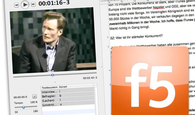 Ab heute erhältlichGratis transkribieren: Neue Cocoa-Mac-App 'f5' Interviews, Diktate und sonstige Aufnahmen in Text umwandeln: Eine mühsame Aufgabe, die langes Tippen erfordert. Einfacher geht's mit spezialisierten...