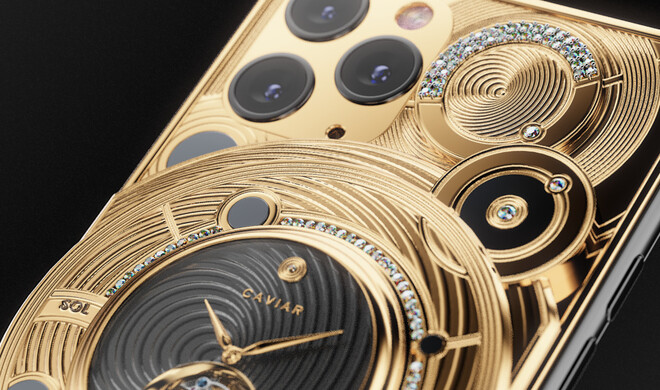 Caviar SolariusDas ist das teuerste iPhone 11 Pro der Welt Der russische Veredler Caviar hat ein iPhone 11 Pro mit 500 Gramm Gold versehen, eine mechanische Uhr eingebaut und verkauft das sogenannte Solarius für schlappe...