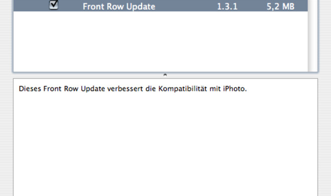 Für iPhotoFront Row erfährt eine Aktualisierung Gewohnt wortkarg hat Apple eine Aktualisierung für das eingebaute Software-Mediencenter Front Row zur Verfügung. Mit 5,2 MB ist das Update nicht sehr groß und...