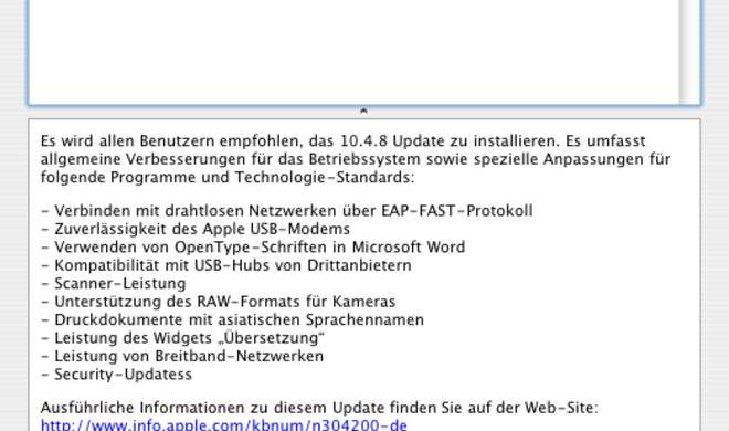 Mac OS X 10.4.8Apple aktualisiert Tiger / Erster Fehler gefunden und behoben Apple hat eine Aktualisierung für das Betriebssystem Mac OS X 10.4 (Tiger) in der Version 8 bereitgestellt. Die Aktualisierung lässt sich auf allen Macs über die...