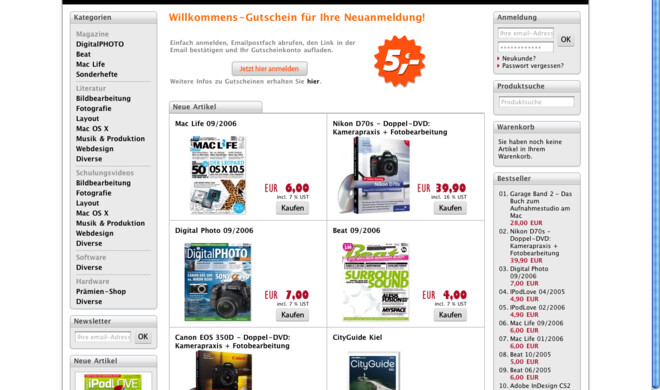 5 Euro Gutschein sichernNeuer falkemedia-shop für Bücher, Schulungsvideos und Zeitschriften falkemedia, Herausgeber der Zeitschriften Mac Life, DigitalPHOTO und Beat, eröffnete am 28. August seinen neuen Webstore unter www.falkemedia-shop.de.