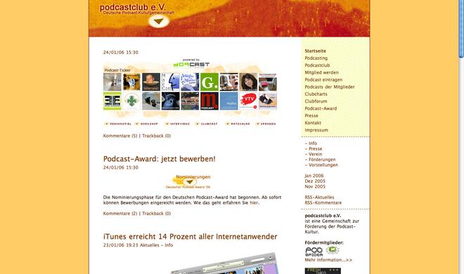 Erster Deutscher Podcast-PreisPodcastclub verleiht Deutschen Podcast-Award Am 7. April 2006 führt der eco - Verband der deutschen Internetwirtschaft in München den ersten Deutschen Podcast Kongress mit Unterstützung von Beck et al....
