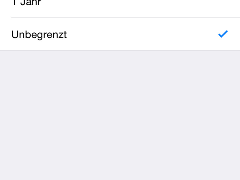 Die Nachrichten-App in iOS 8 bietet bekanntermaßen einige neue Funktionen wie das Versenden von Audiodaten oder Standortinformationen. Neu ist auch eine Option in den Einstellungen für die Nachrichten-App: Hier können Sie unter „Nachrichten behalten“ zukünftig festlegen, ob diese nach 30 Tagen, nach einem Jahr oder niemals automatisch gelöscht werden sollen. Das kann helfen Speicherplatz zu sparen. Übrigens: Audio- und Video-Aufnahmen, die in iOS 8 über die Nachrichten-App aufgenommen und verschickt werden, löschen sich nach kurzer Zeit automatisch. Es sei denn, Sie tippen die Schaltfläche „Behalten“ unter der entsprechenden Botschaft an.