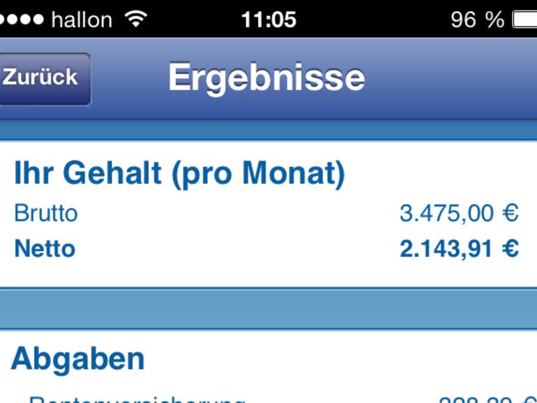 Bekommen Sie den Lohn, der Ihnen zusteht? Wie viel mehr brutto müssen Sie verlangen, damit Sie 200 Euro mehr netto auf Ihr Bankkonto bekommen? Wie viel zahlt Ihr Arbeitgeber zusätzlich zu Ihrem Dazu gibt die kostenlose App Nettolohn.de Auskunft. Sie tragen alle erforderlichen Angaben wie Bruttogehalt, Steuerklasse, Bundesland, Anzahl der Kinder und anderes ein, und die App listet Ihnen neben dem Nettoeinkommen auch gleich die Beträge auf, die in die Rentenkasse und andere Versicherungen fließen. Zur Berechnung setzt die App eine Verbindung zum Internet voraus.