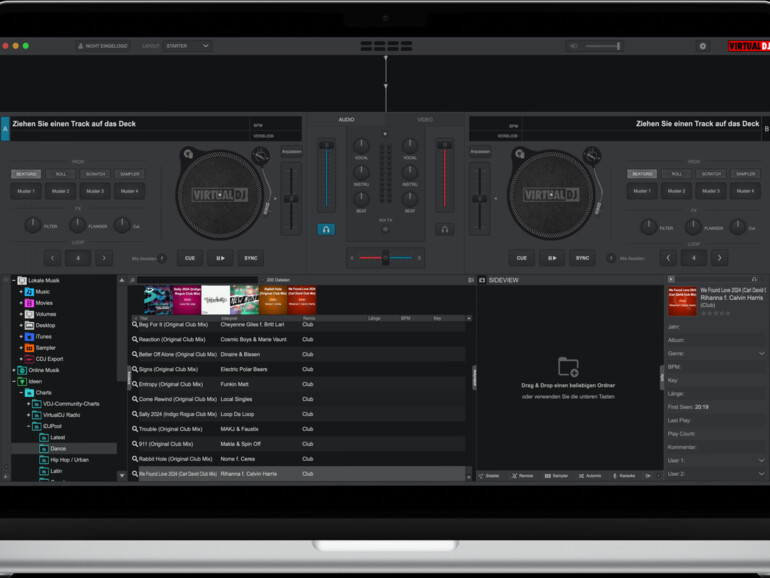 Virtuelles Mischpult: Seit mehr als 20 Jahren ist Virtual DJ am Markt vertreten und hilft nicht nur Hobbyisten beim Einstieg in die DJ-Karriere, sondern auch professionellen Anwendern in ihrer Karriere. Der Hersteller der Software, die es für Mac und Windows gibt, prahlt mit über 100.000.000 Downloads und täglich mehreren Millionen aktiven Nutzern, was wir zwar nicht überprüfen können, aber auch nicht für gänzlich abwegig halten. Für Hobbyisten ist die Software mit allen gängigen Funktionen kostenfrei. Wer kein Profi-DJ ist, wohl aber professionelles Equipment verwenden möchte, zahlt je nach verwendetem USB-DJ-Controller zwischen 50 und 200 Euro für das Lizenz-Upgrade. Echte Profis werden mit einmalig 300 Euro oder monatlich 20 Euro zur Kasse gebeten.