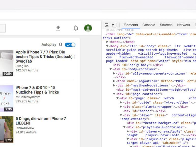 Mit einem Rechtsklick auf ein Video können Sie „Statistiken für Nerds“ auswählen und sich detaillierte, technische Informationen zu dem Video anzeigen lassen. Sie können zudem die Video-URL kopieren (der Link wird in der Zwischenablage gespeichert), auf „Wiedergabeprobleme beheben“ klicken, um Feedback an Youtube zu geben oder das Video als Schleife abspielen lassen, um es in endlos Repeat zu sehen. Ein doppelter Rechtsklick auf ein Video offenbart wiederum ein anderes Menü. Hier können Sie auf Start oder Pause klicken, den Ton ausstellen, das Video als Schleife abspielen oder sich das Entwickler-Tool unter „Element untersuchen“ anzeigen lassen.