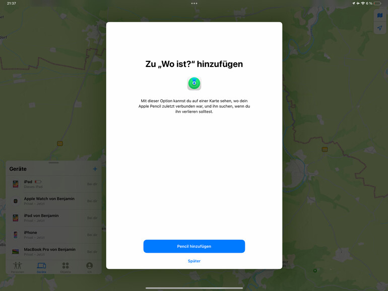 Bestätige im Anschluss, dass du den Apple Pencil zum „Wo ist?“-Netzwerk hinzufügen möchtest. Anschließend kannst du ihn jederzeit wiederfinden.