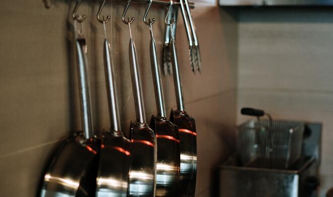Die meisten Pfannen haben im Stiel ein Loch. Viele Menschen hängen die Pfannen daran an die Wand oder an einen Haken. Doch dafür ist es eigentlich gar nicht gedacht. Vielmehr kannst du deinen Kochlöffel dort beim Kochen einhängen, damit er nicht in der Pfanne oder auf eine Arbeitsfläche herumliegt.