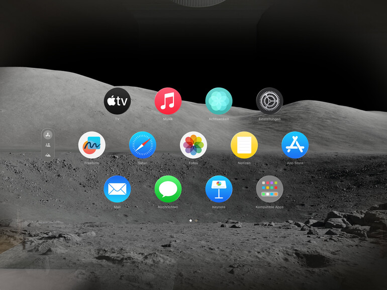 Du kannst Apps ganz nah an dich heranholen. Das ist insbesondere bei kompatiblen iPad-Apps sinnvoll, die sich dann annähernd wie auf einem echten iPad bedienen lassen. Das ermöglicht dir schnelles Wischen, Tippen und Auswählen, was viel effizienter ist als die Steuerung nur durch Augenbewegungen und Gesten.