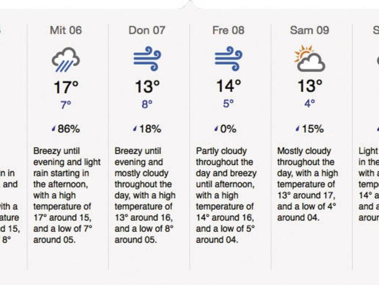 Trotz oberflächlicher Schlichtheit ist BusyCal keinesfalls unansehnlich. Gewährt man der App Zugriff auf den Standort, zeigen die Erweiterung für die Menüleiste und die Wochenansicht das Wetter und sogar Mondphasen an. Die Konfigurationseinstellungen erlauben weiter das Anpassen von Schriftart, -farbe und -größe für viele Programmbestandteile. Über eine Fülle mitgelieferter Emoji oder eigene Grafiken kann man eine bessere Erkennbarkeit von Terminen erreichen.