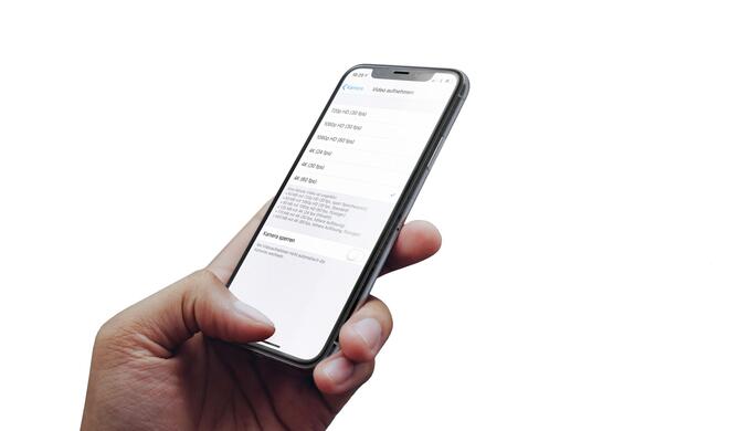 Öffne die Einstellungen-App. Scrolle nach unten und tippe den Menüpunkt „Kamera“ an. Du siehst nun allerlei Einstellungen. Wähle „Video aufnehmen“ aus der Auflistung aus. Schiebe jetzt den Regler neben „Kamera sperren“ nach rechts und verhindere somit bei zukünftigen Videoaufnahmen, dass das iPhone die Kamera während des Zoomens wechselt und damit Sprünge verursacht.