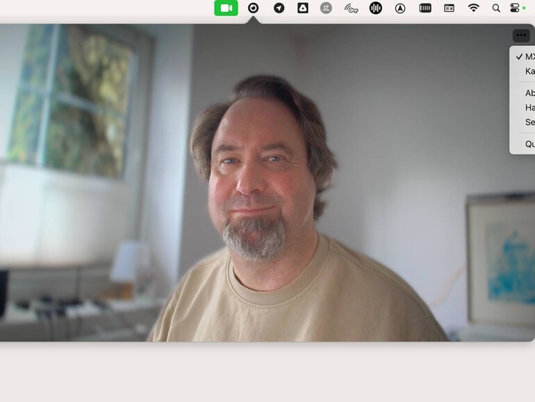 Zusätzlich zum Kontrollfenster kannst du mit Apples Standard-Dialog einfache Kameraeinstellungen vornehmen. Auch die mit macOS Sonoma eingeführten Emoticon-Reaktionen lassen sich hier mit einem Mausklick auswählen.