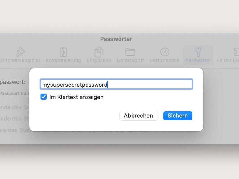 Sensible Dateien solltest du mit einem Passwort schützen. Praktisch: Keka bietet dir die Definition eines wiederkehrenden Standardpassworts. Alternativ kann die App auch bei jeder Komprimierung nach einem Passwort fragen.