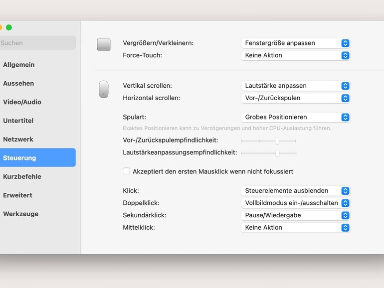 Die Einstellungsmöglichkeiten sind üppig. Vom Aussehen des Players und möglicher Untertitel über das Lautstärkeverhalten bis hin zur Steuerung mit der Maus und per Tastatur: Iina lässt dich die verschiedensten Aspekte bestimmen.