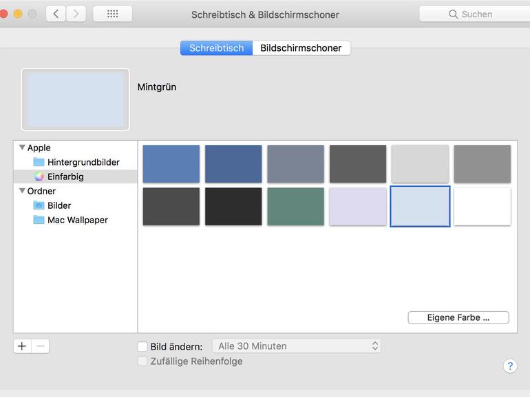 (Bild: Screenshot) Beginnen Sie mit dem Schreibtischhintergrund. Verwenden Sie einen ruhigen oder einfarbigen Hintergrund. Klicken Sie dazu auf „Schreibtisch & Bildschirmschoner“ und suchen Sie ein passendes ablenkungsfreies Hintergrundbild.